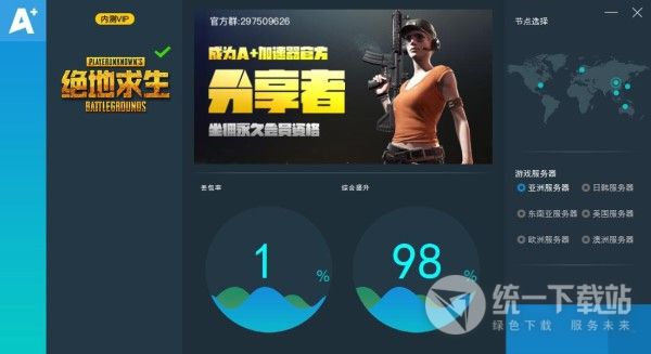 绝地求生A+加速器 v0.13 绿色版软件大小:3.25MB