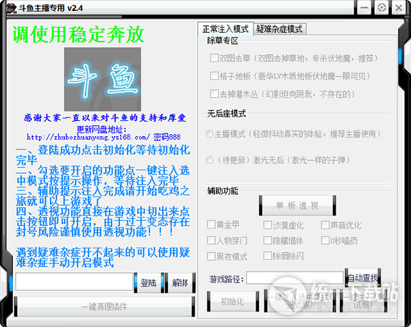 斗鱼主播专用吃鸡辅助(除草/无后/穿门/黄金甲/秒打药) v2.4 绿色稳定版