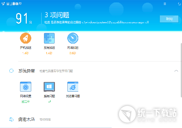 扫描更全面,涵盖上网设置、浏览器、系统安全、系统综合、移动设备5大类,让病毒无所遁形!