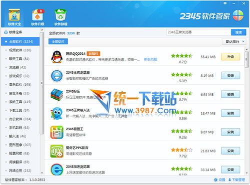 2345软件管家汇集各种软件、游戏,下载更快速,安装更智能,更新更及时。2345软件管家能够将电脑内安装过的软件更完整的整理在一起,一键升级,卸载更干净,更方便,是电脑必备软件管理工具。