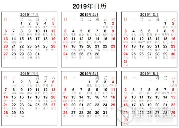 2019年日历表格A4打印版(带农历)软件大小:0.331MB