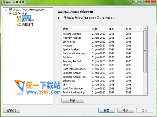 4、安装完上面一步的软件,点开始,程序,arcgis,license manager,license serveradministrator,点开它,弹出的窗口点start/stop license manager,点停止,再点启动,再点重新启动许可;