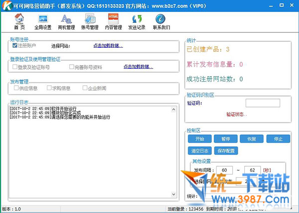 可可网络营销助手(营销系统)是一款综合性的网络推广软件、SEO软件。该软件可以高效的、全自动的注册及营销各类B2B网站。软件支持多种辅助设置,如伪原创、内容变量、自动激活账号等。是一款整合了B2B信息营销的综合营销软件,是您做网络推广、网络营销及SEO优化的 必备软件!