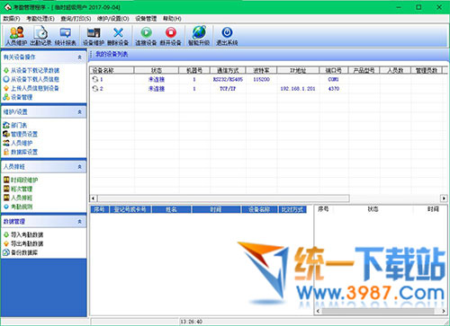 7、将设备上的考勤数据下载至软件中(连接设备-从设备下载记录数据)