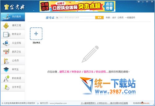 金考典考试软件2018提供建筑、医学、财务、从业资格、公务员等考试历年真题、章节习题、预测题及其优质解析。智能题库练习,无纸化模拟考场,最新备考指南,错题强化,学习进度分析,收藏试题,同步记录等,帮助您轻松提高成绩。
