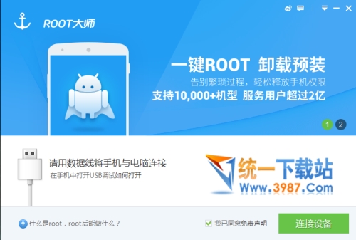 3)将手机连接电脑,打开“usb调试模式”,确保手机成功连接ROOT大师!