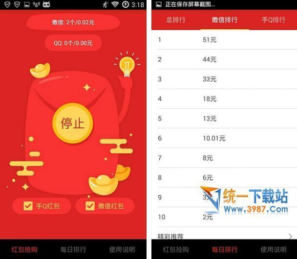 懒人红包手机版是一款2017便捷实用的抢红包神器,让你不会错过每一个微信群或者个人,QQ群以及个人的红包,记录分明,欢迎大家下载使用。