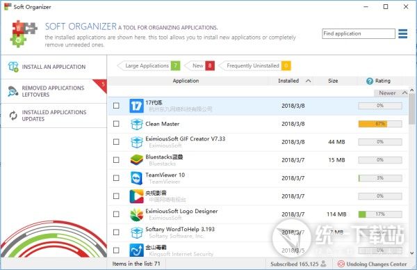 Soft Organizer是一款功能强大的高级软件卸载大师。还可监视应用程序的安装过程中对系统的更改,也就是安装前后进行扫描,进行对比,保存记录,卸载时按照更改进行卸载,所以卸载后是比较彻底的。