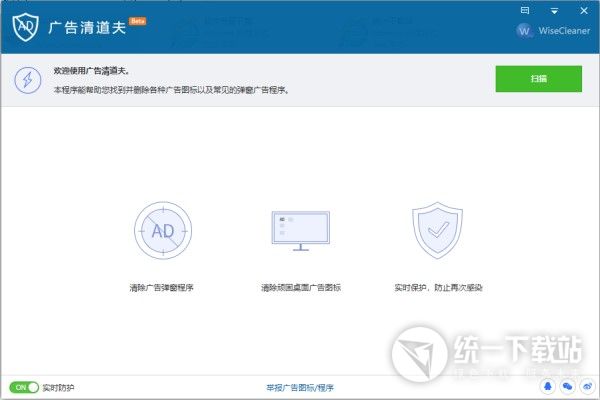 Wise AD Cleaner(广告清道夫)是一款免费的广告程序清理工具。由Wise Cleaner开发,它能有效的检测并清理Windows系统中已安装的的广告软件,还能修复被恶意篡改的浏览器首页设置,以及清理被恶意添加到资源管理器的图标,如某某云盘等。Wise AD Cleaner 还具有实时保护功能,可以实时拦截非广告程序弹出的广告弹窗。