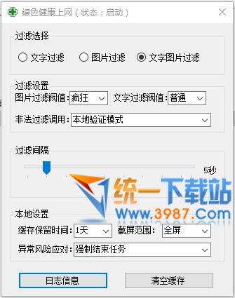过滤间隔最好不要太长或者太短了,当然网速好的人可以随意了,你所做的操作都会以图片的形式保存在缓存文件夹了,你可以设定缓存的保留时间了。 图片过滤如果将阀值设定为疯狂,那么性感图片也会被识别为**图片了。
