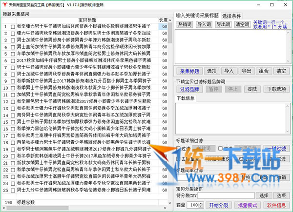 5、下载宝贝:下载宝贝可去除标题里面包含宝贝属性里面的品牌词,更加有针对性的过滤;