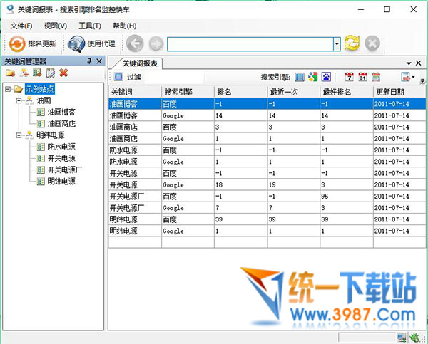 搜索引擎排名监控快车是一款非常好用的搜索引擎监控工具,搜索引擎排名监控快车功能强大,能够为用户提供最新版的网站排名咨询,软件提供最新版提供Google,百度等搜索引擎的实时排名监控及图表分析,为网站运营工作者提供最便利的帮助。有需要的朋友快来下载试试吧!