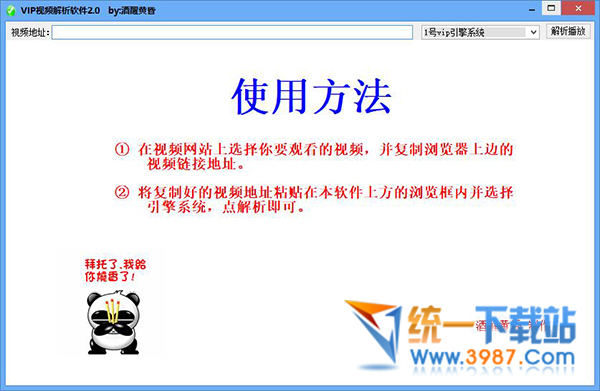 1、下载安装酒醒黄昏VIP视频解析软件,打开软件会看到一个视频地址输入框,输入需要播放的视频地址,点击解析
