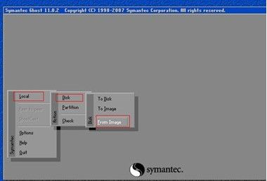 2、在出现的ghost界面中,选择Local->Dist->FromImage。