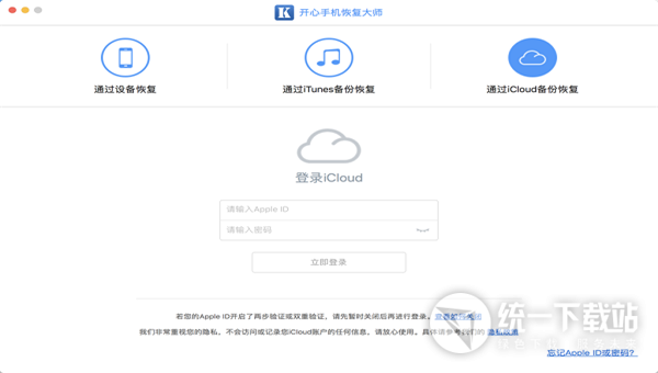 支持直接扫描iOS设备进行数据恢复与备份,同时支持从已有的iTunes和iCloud备份中恢复数据。