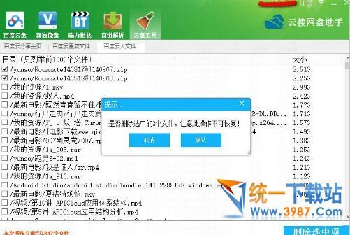 支持一键查看网盘中重复文件,按文件大小排序,支持智能勾选