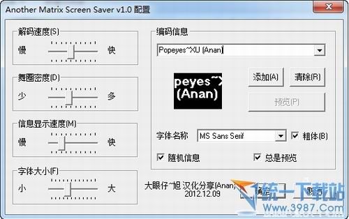 这是是一个可以实现黑客帝国矩阵效果的屏保,可以支持字母、数字和日文片假名字符。它使用方便,可以对代码的速度进行调整,也可以对代码的内容进行编辑。使用说明:下载下来的SCR文件复制到 C: WINDOWS system